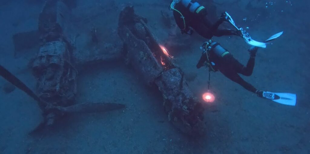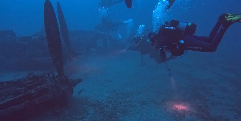 Le dimanche matin, le temps frais mais ensoleillé, nous a laissé l’opportunité d’organiser pour tous nos plongeurs N2 et N3, une plongée au Nitrox mémorable au milieu de la baie de Saint Cyr, sur l’épave du P38 Lightning. Cet avion, coulé en 1944 mais encore en bon état, repose sur un fond sablonneux à 38m. Nous nous sommes régalés à l’observer, avec toute la vie dont il regorge, en particulier les magnifiques langoustes et chapons. Les plus chanceux ont même pu apercevoir un homard sous une aile de l’avion.