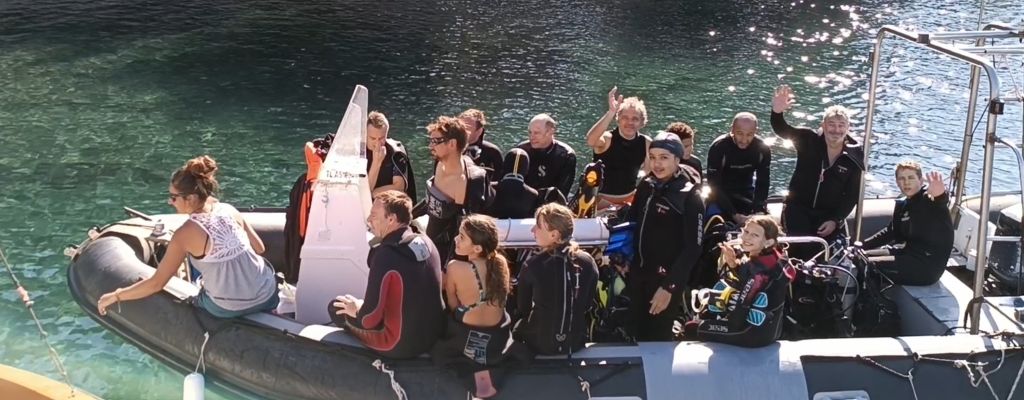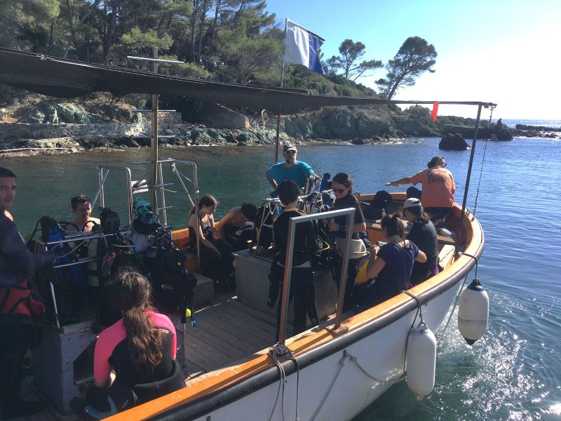 Bien que déjà mi-octobre, ce week-end nous a gratifié d’un très beau soleil et surtout d’une mer bien agréable avec une température de 21-22°C. Nos jeunes plongeurs, entourés de leurs encadrants, ont embarqué sur la chaloupe ou le semi-rigide du CIP Dramont. Après une bascule arrière des bateaux, ils sont partis explorer quelques-uns des sites magnifiques et réputés d’Agay : l’île d’Or, les Pyramides, L’Arche, Le Village…