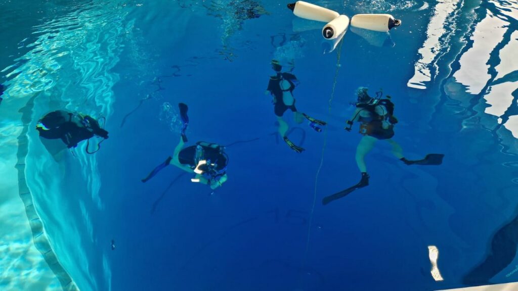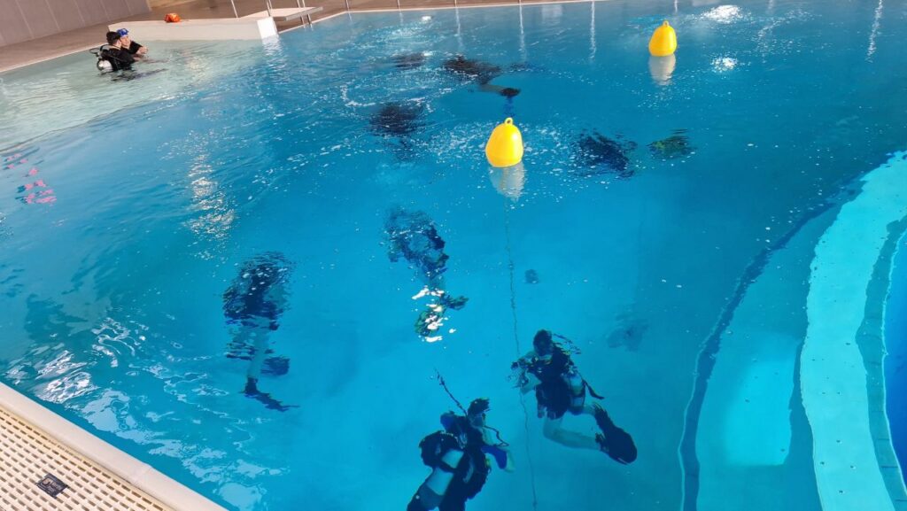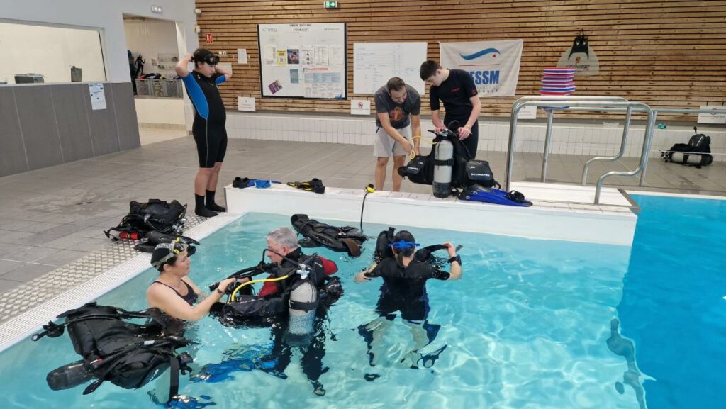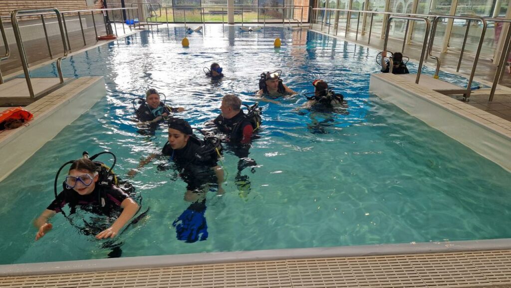 Ce dimanche, une quinzaine de plongeurs, se sont immergés lors d’une séance d’une heure le matin, suivie d’une seconde dans l’après-midi à la fosse du centre aquatique Les Vagues de Meyzieu. Ces 2 plongées rapprochées facilitent la progression grâce à un premier débriefing permettant de retravailler certains apprentissages l’après-midi.